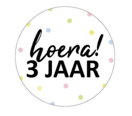 5 Stickers rond - Hoera! 3 jaar / pastel