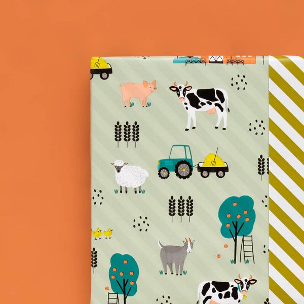 Cadeauzakje 12x19 - Boerderijdieren groen / streep olijf