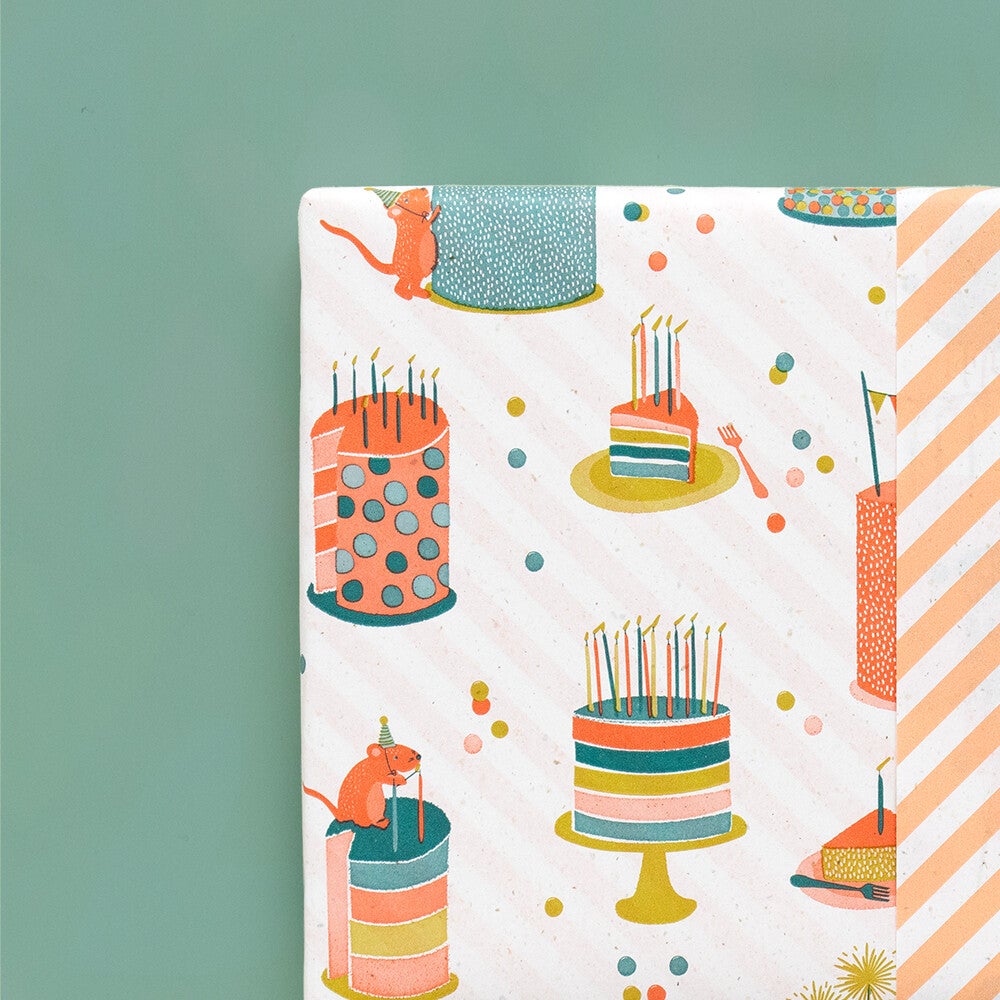 Cadeauzakje 12x19 - Verjaardagstaart / streep perzik