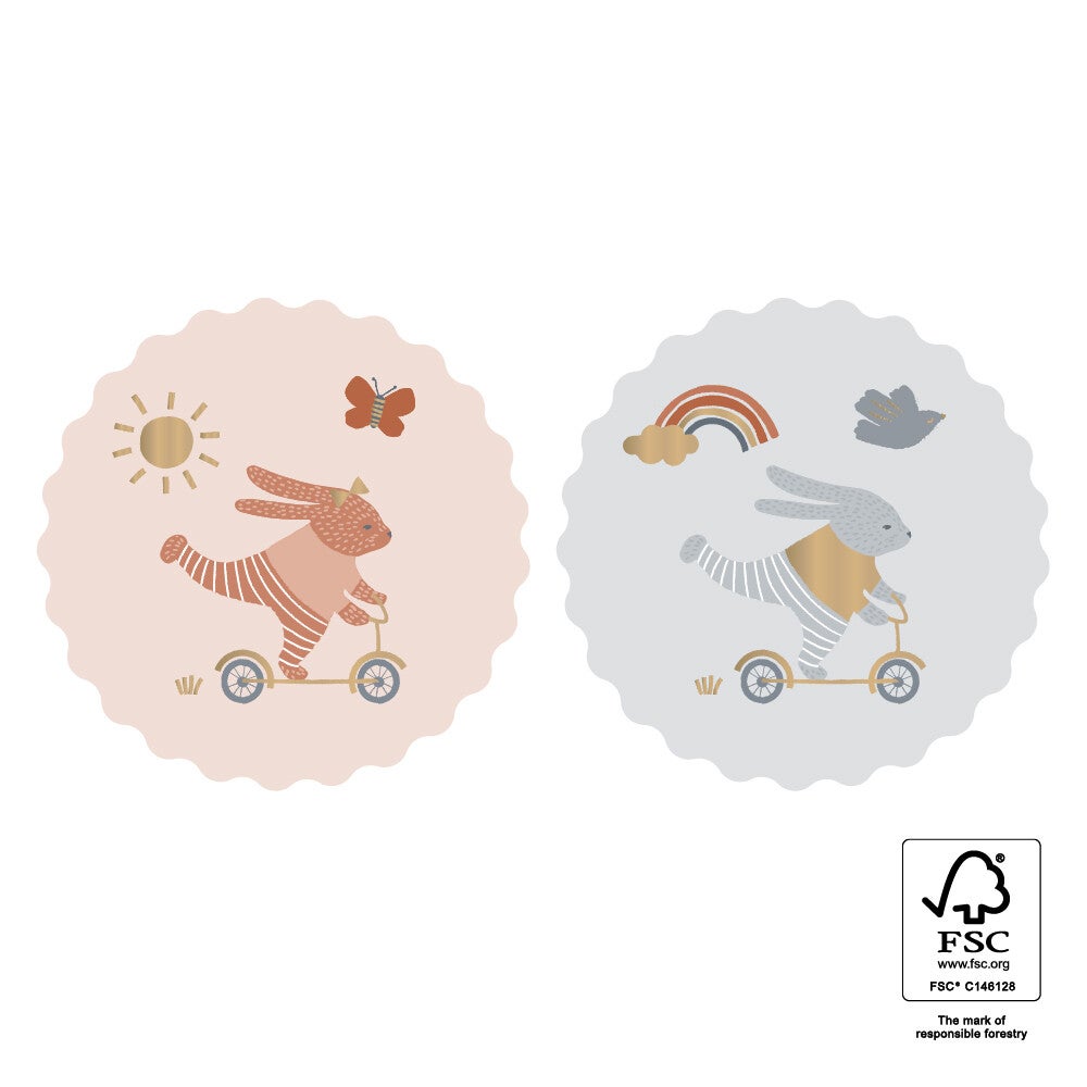5 Stickers rond kartel - Knuffels - Roze, blauw